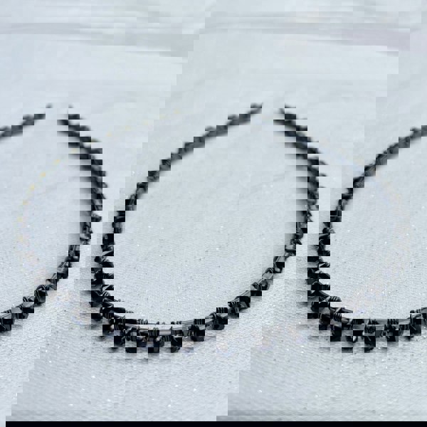 The black crystals against the black band, makes for a chic finish that gives you the perfect amount of shine for everyday or a special occasion.