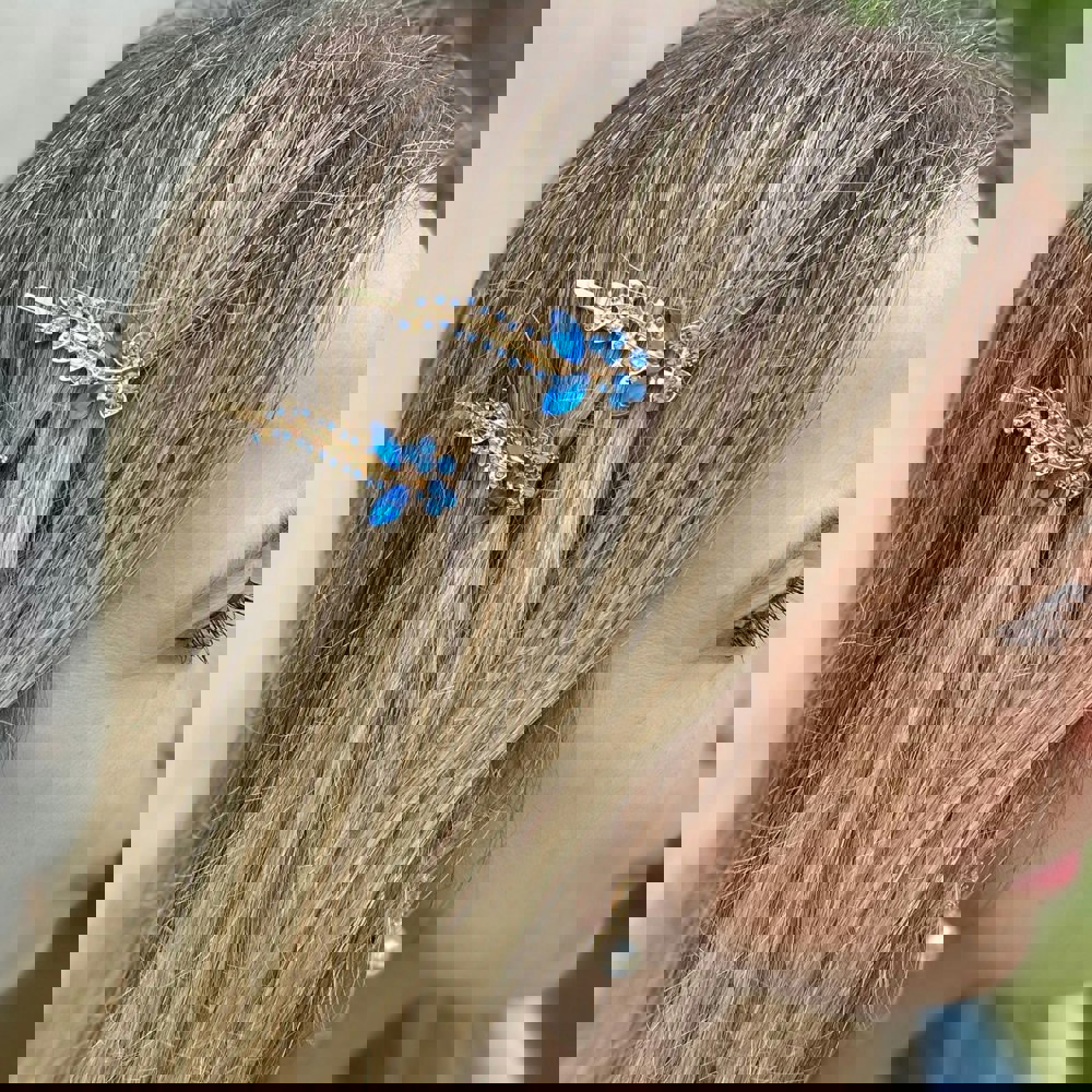 This Blue hair slide set is all about classic glamour, as slides never go out of style.