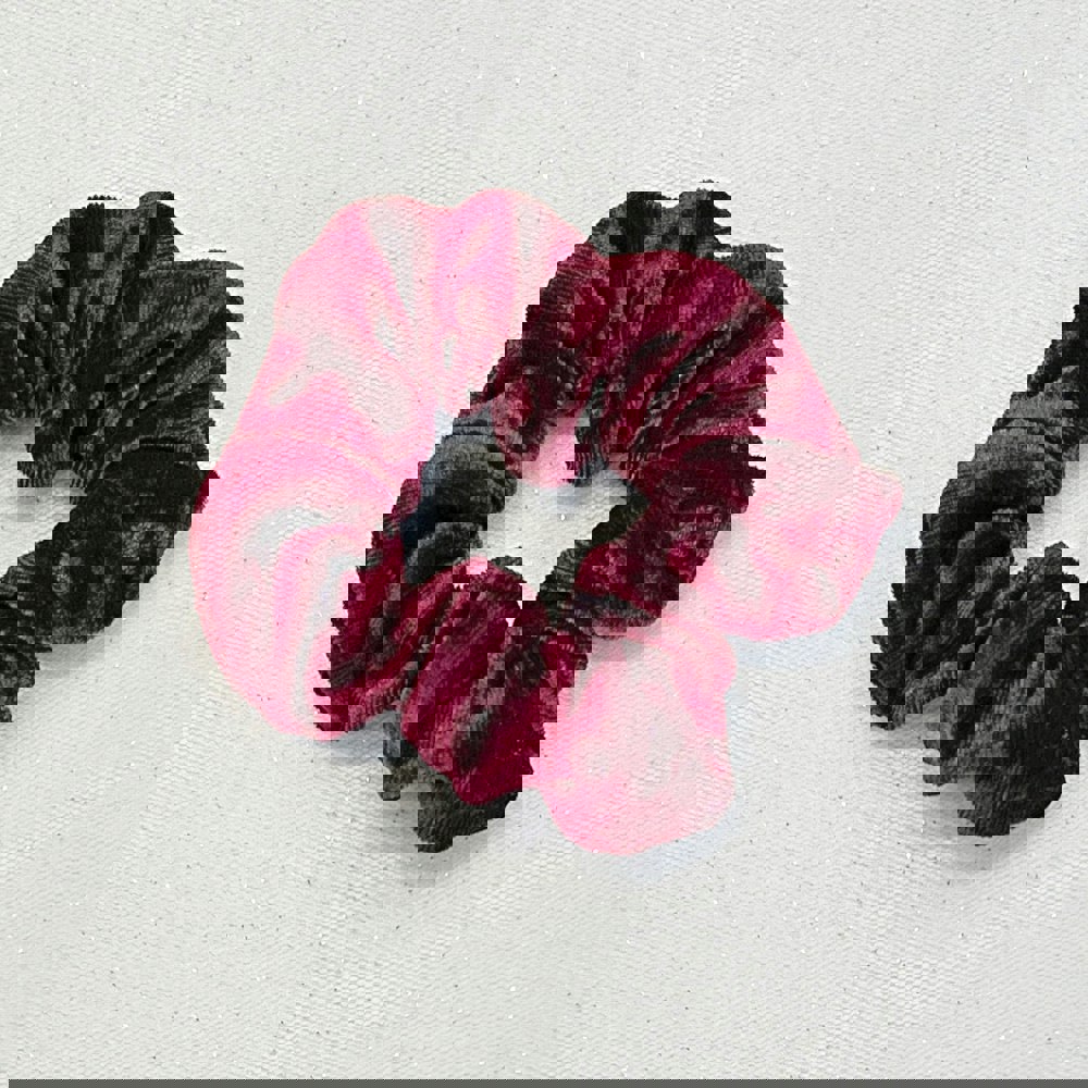 For an 80s inspired look, try your burgundy scrunchie in velvet with a big fluffy jumper or for a soft touch, wear your scrunchie in a messy bun for a girly day.