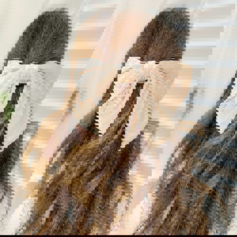 Cream Hair Bow Velvet Bow Hair Clip Hair Down