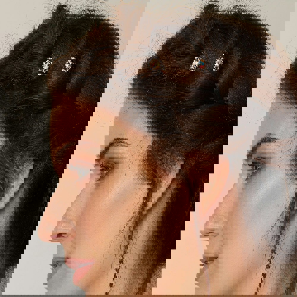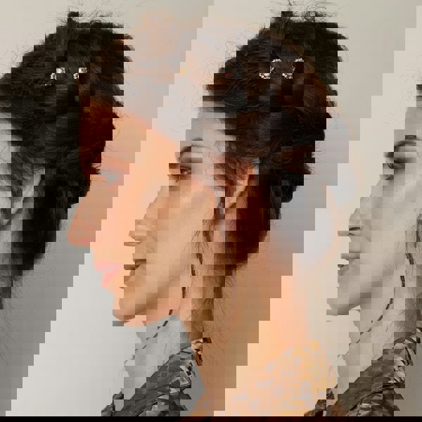 Set with gently sparkling crystal, on a dainty gold hair grip, you will reach for your diamante hair grips time and again when you want to add some sparkle to your hair. They are very easy to wear as they are so small and light.