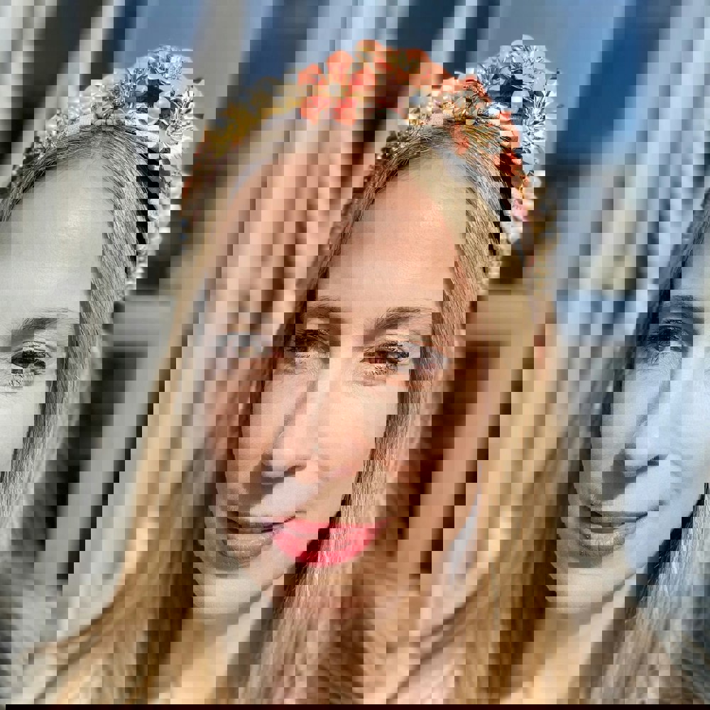 Style your flower headband with a floral dress as a wedding guest, for a joyful take on wedding guest chic.