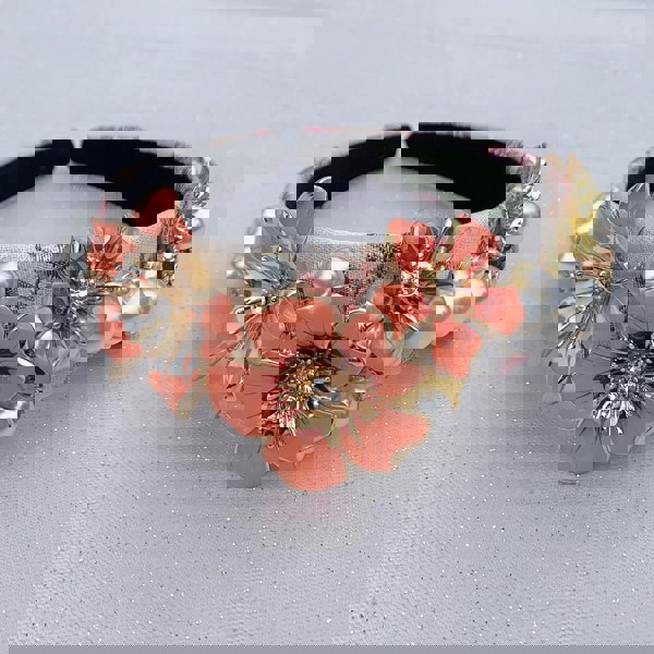 This coral headband makes a sumptuous statement!
