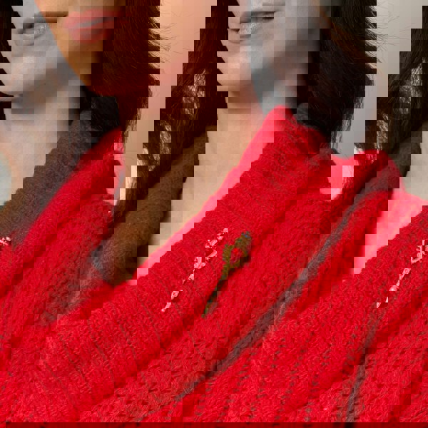 In our images we have styled the brooch with knitwear. This works well for special winter occasions, such as Christmas, where you want a cosy feel, but added glamour thanks to your crown brooch. Try wearing with red lipstick for maximum regal drama.