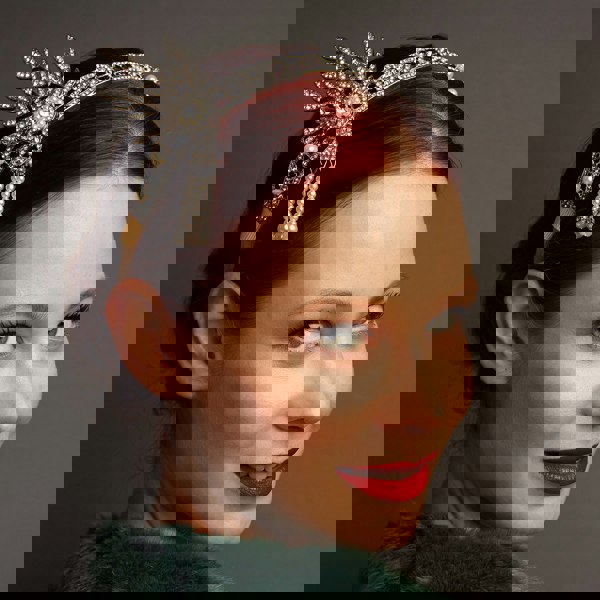 The diamante and pearl, feather motif, gives a signature Gatsby look.