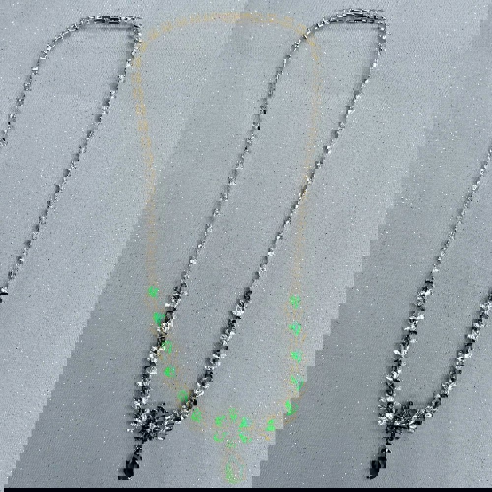 This Green Crystal Necklace measures at 43cm long.