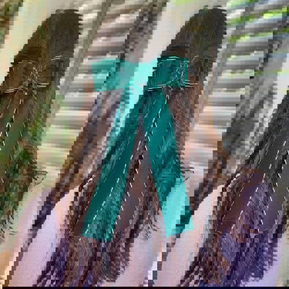 Green Velvet Hair Bow Dark Green Hair Clip Half Up