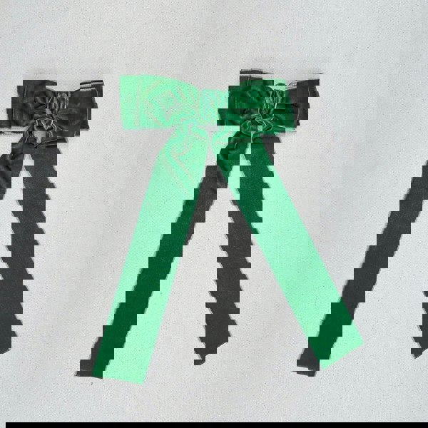 This bow hair clip measures 12. 5cm wide and 22cm long.