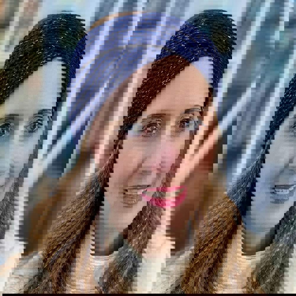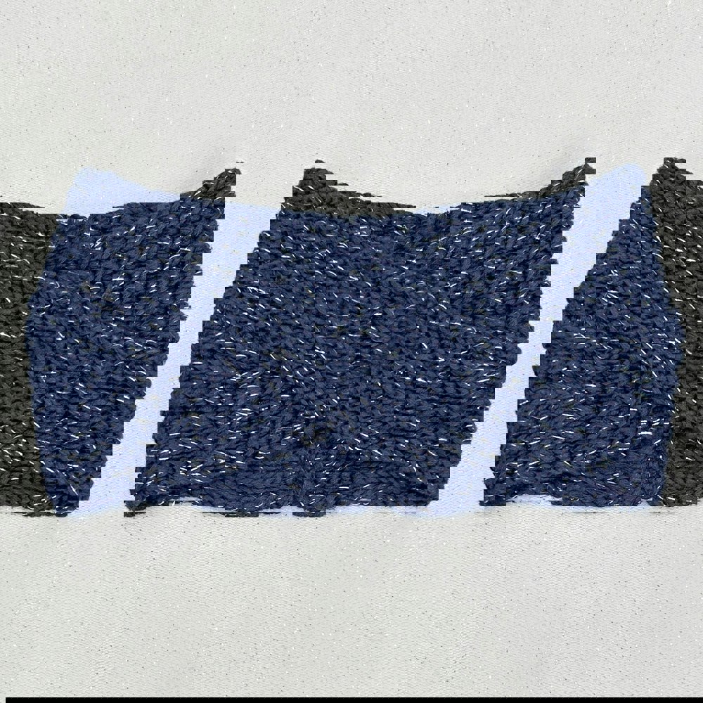 This navy headband is crafted from soft organic cotton, with a lurex thread for extra pizzazz. It's a wonderful, sustainable option, and very warm too.