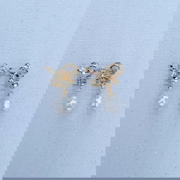 These pearl drop Earrings are a charming touch, with a vintage-inspired, bow detail at the ear.