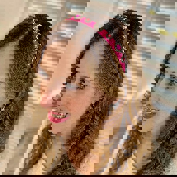 This pink headband is easy to wear, and delightfully pretty.