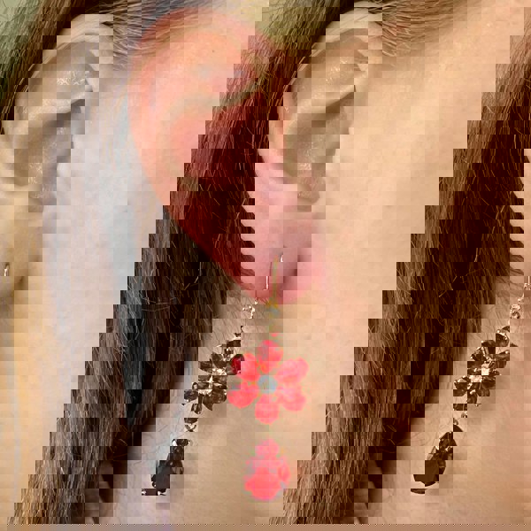 Wear your red flower drop earrings for a special occasion, on the beach or just out to to the shops.