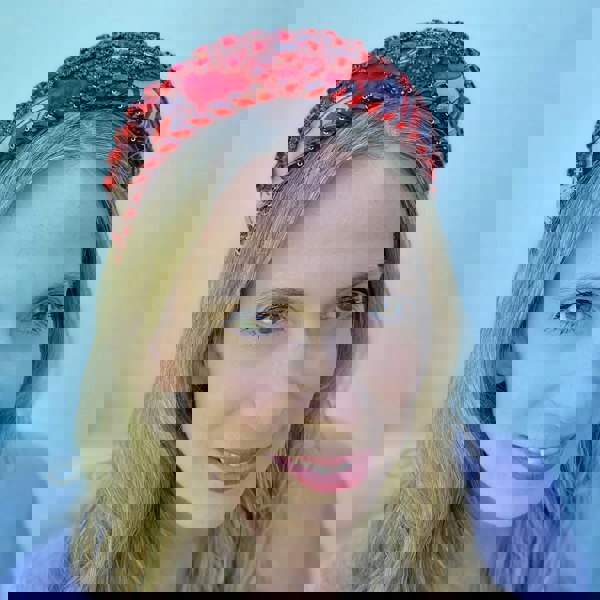 This red headpiece makes a gorgeous gift. It is presented in eco-friendly gift wrap, and arrives wrapped in tissue and organza pouch.
