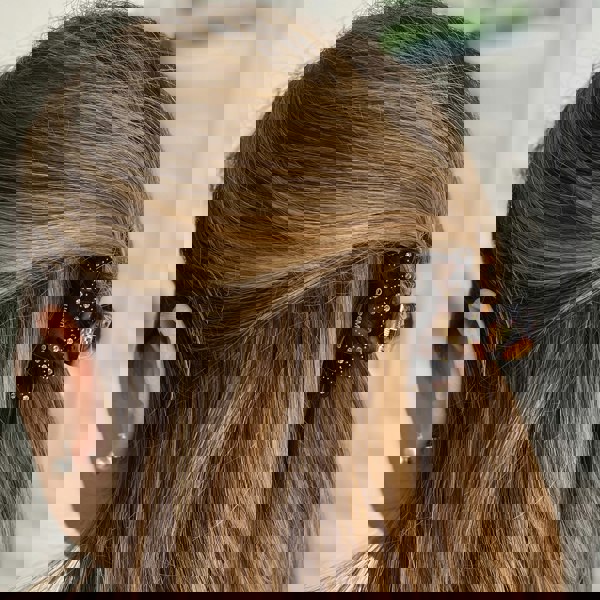 Always a classic favourite, Tortoiseshell is easy and beautiful to wear. This tortoiseshell hair claw has all the vibes of a beach day, with its crystals catching the light beautifully.