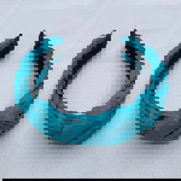 This turquoise braided headband makes a lovely gift. It is presented in eco-friendly gift packaging, and arrives wrapped in tissue and ribbon. We can add a personal gift message to your hair accessory – just add your message in the shopping cart.