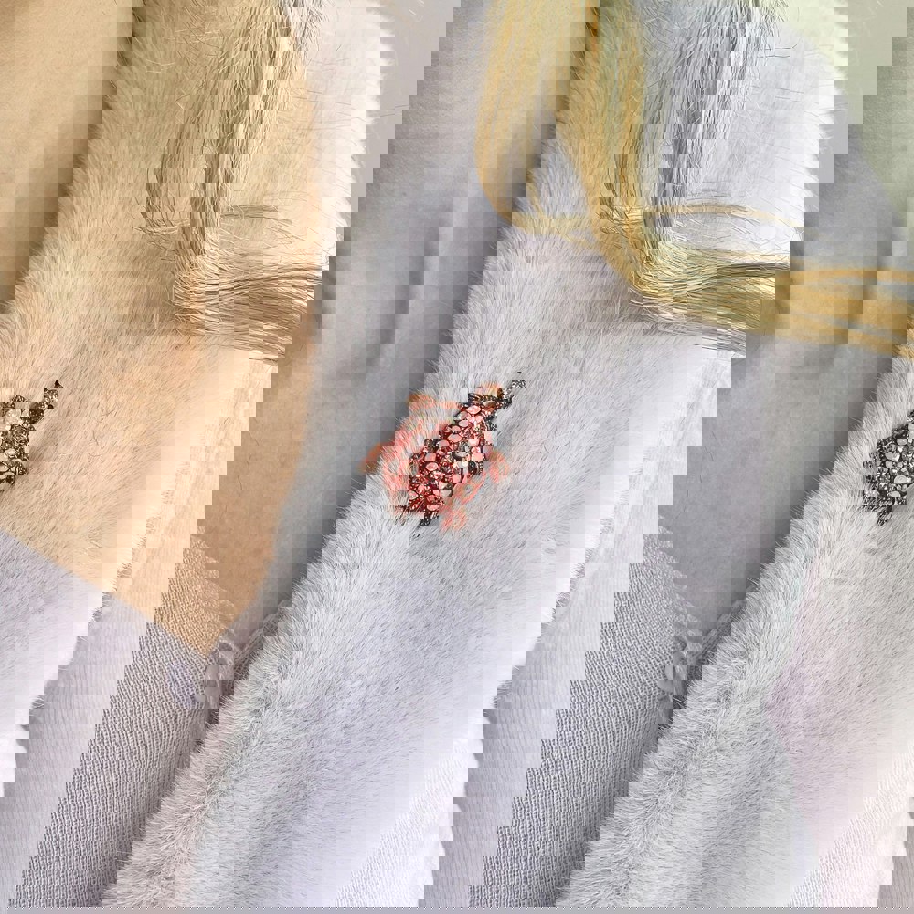 Our pink turtle brooch is adorned with beautifully sparkling rhinestones, to make a gorgeous tribute to this beautiful animal.