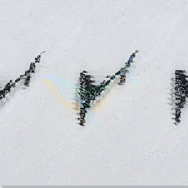 Our black and white whale brooch is adorned with beautifully sparkling rhinestones, to make a gorgeous tribute to this beautiful animal.