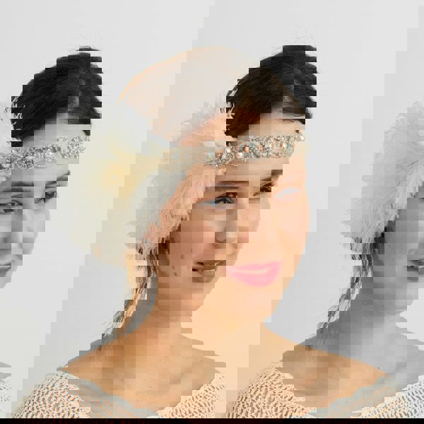 Wear our flamboyant, White Gatsby Headpiece for a luxe 1920s themed event, or even for your own wedding.