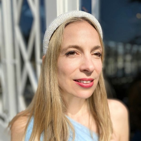 Style your white headband with a colourful maxi dress for wedding guest hair.