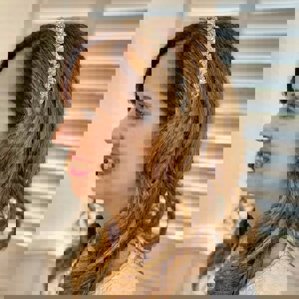 This white jewelled headband is easy to wear, and delightfully pretty.