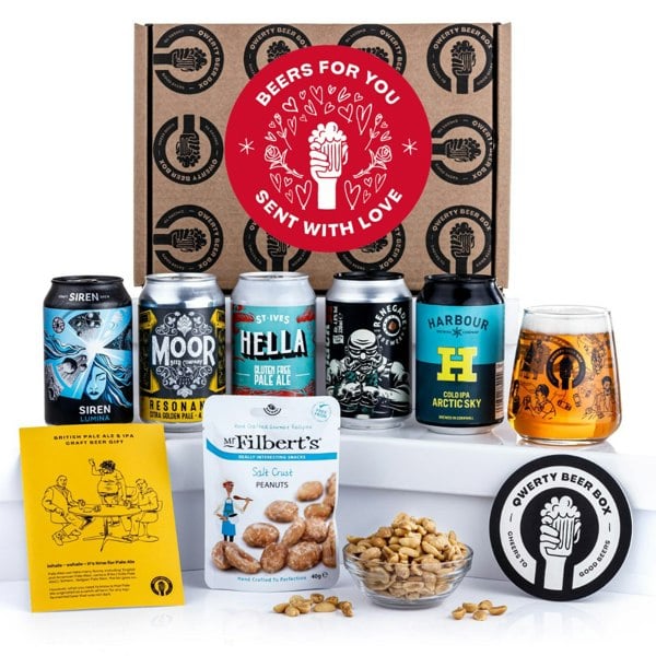 ULTIMATE VALENTINE'S DAY GIFT FOR MEN, 5 cracking craft IPA & Pale Ales, premium salted Mr. Filbert's nuts and a stylish branded tasting glass