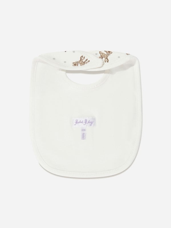 The Rachel Riley Baby Fawn Bib in white is a charming choice for everyday mealtimes. Finished with a playful fawn print, it brings a stylish touch to a practical essential, making it suitable for unisex babies.