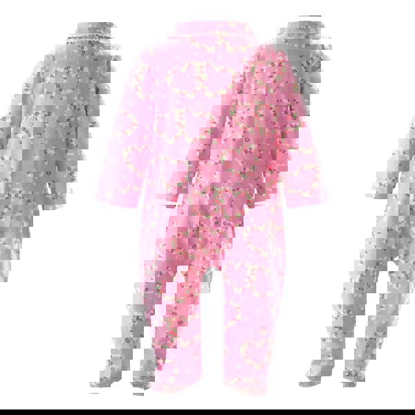 New! Introducing our Daisy Babygro, a soft and snug outfit that your little one will love. With ivory daisy hearts on bright pink print, this babygro is perfect for sleep time or for comfy and stylish daily strolls. Features snaps fastening, covered foots, and scalloped trimmings for a charming touch.