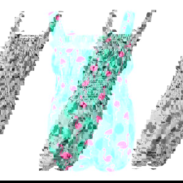 • Cheerful flamingo print – sweet pink flamingos dancing across a soft pale green base