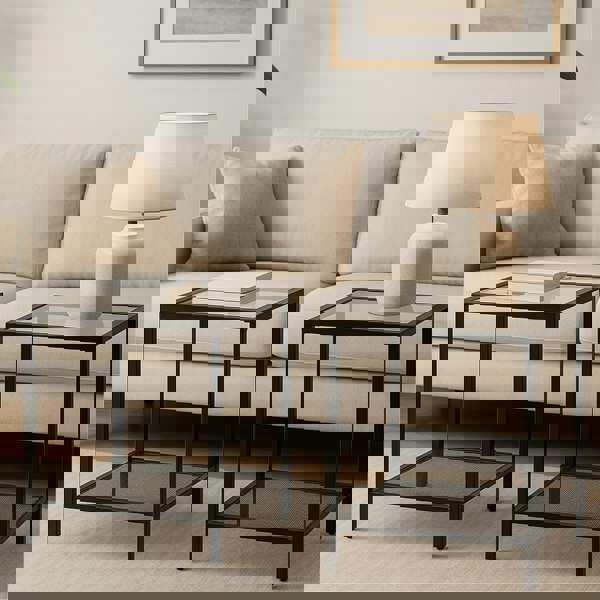 Modern Elegance with Versatility: A sleek blend of transparent tempered glass and a black metal frame creates a warm, minimalist look that fits effortlessly into any interior style.