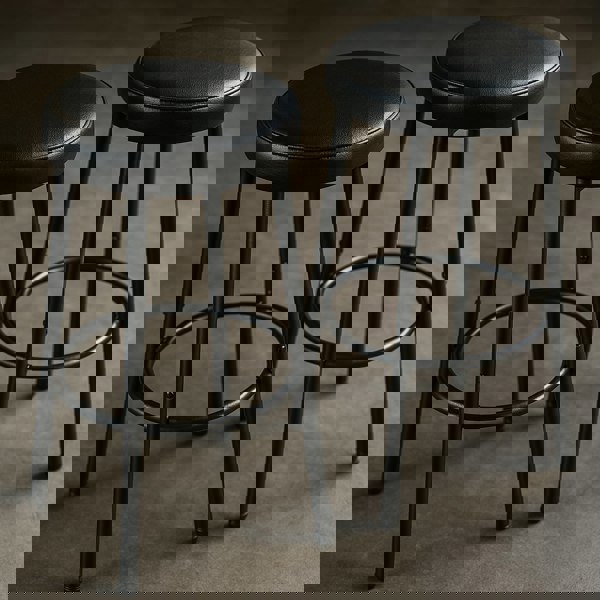 Sleek Modern Style: Featuring black PU seats and matching metal legs, these stools showcase a minimalist look with a touch of contemporary elegance.