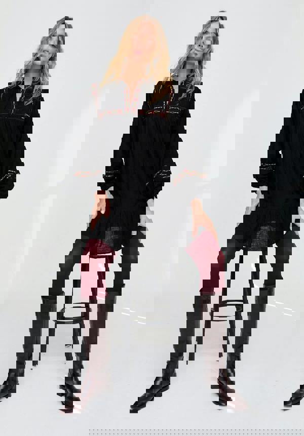 The Charlie mini dress brings playful movement to a classic boho silhouette. Cut in an easy swing shape with intricate embroidery, it’s a versatile piece that feels as effortless with sandals by day as it does with boots by night.