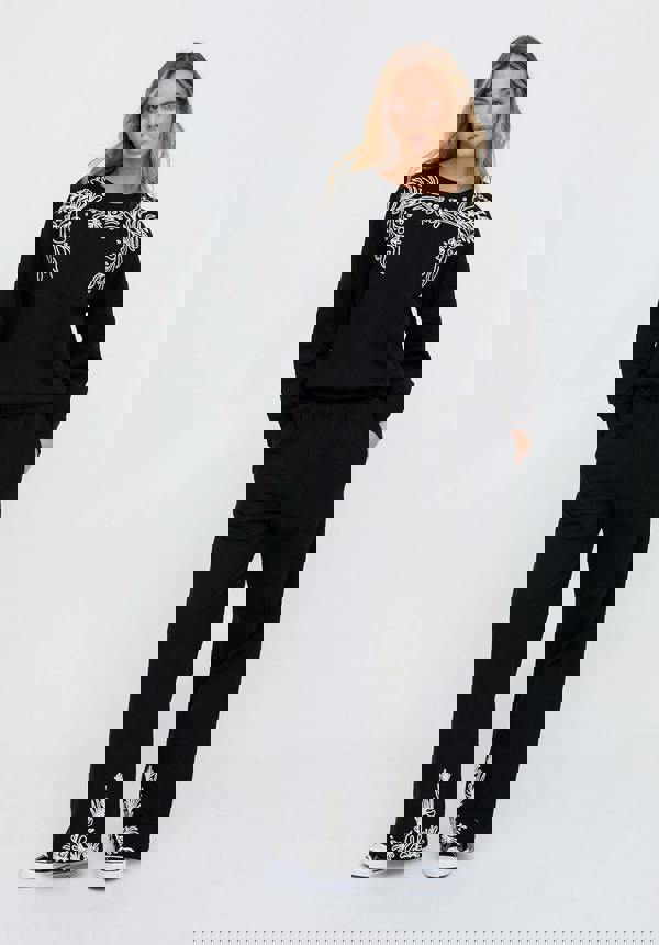 The Marmalade trouser brings an elevated touch to casual dressing with delicate embroidery on a flowing wide-leg silhouette. Designed in classic black with a comfortable fit, it pairs perfectly with the matching Marmalade sweatshirt for a co-ordinated look that’s both relaxed and refined.
