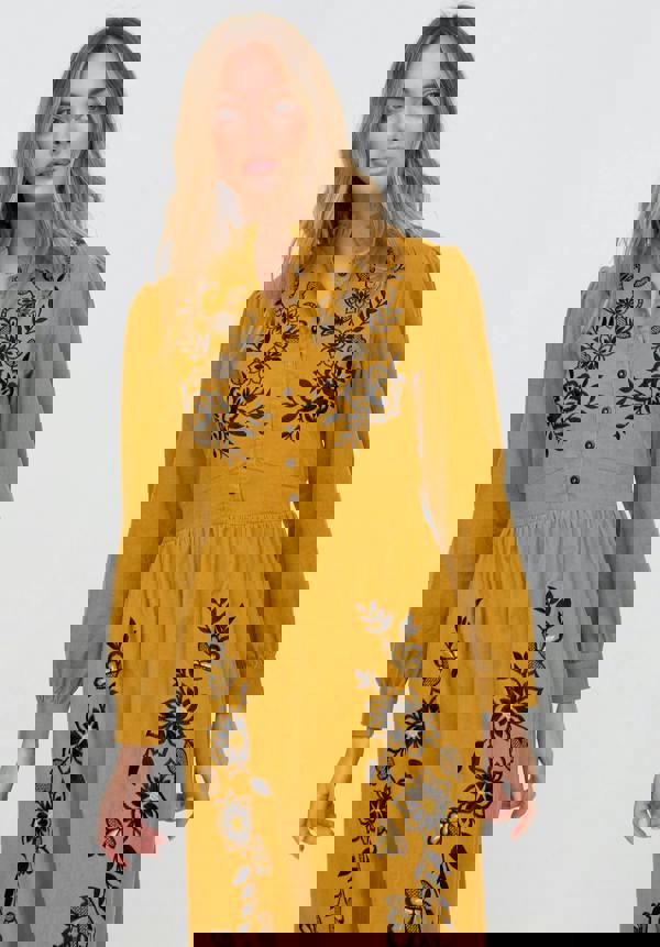 The Puglia dress reworks a classic midi silhouette in soft corduroy for a fresh boho feel. In a warm mustard yellow, it’s an easy piece that blends texture, comfort, and everyday style — perfect layered through the seasons.