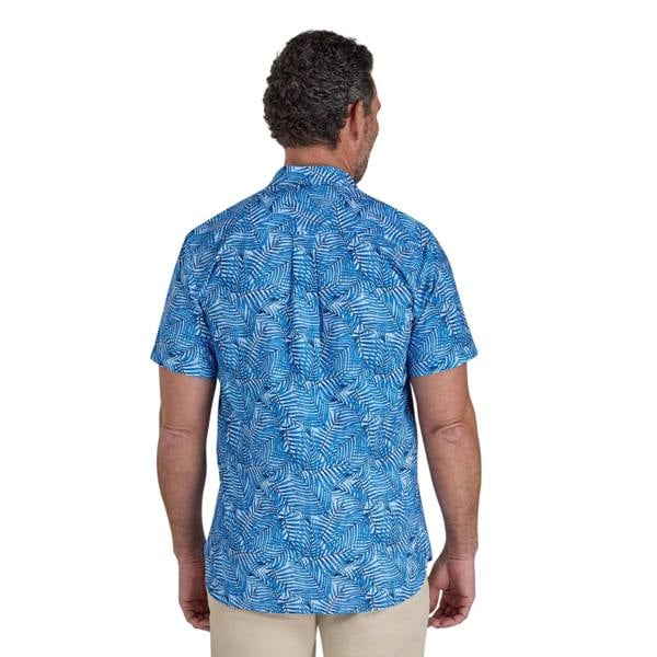 Bring a fresh, patterned finish to warm-weather dressing with the Raging Bull Bali Palm linen shirt. Cut with short sleeves and a turn-down collar, it keeps the look crisp while staying easy to wear for casual days. The sky blue base is printed all over with a palm leaf motif, giving the shirt a distinctive holiday-ready feel without straying from classic shirting details.