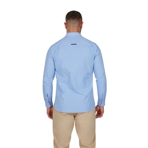 Raging Bull classic striped shirt in mid blue, made from 100% cotton. The design combines stripe detailing with an embroidered logo for a clean, recognisable finish. A turn down collar and button-down fastening keep the look traditional, while long sleeves with buttoned cuffs provide a neat, structured outline.