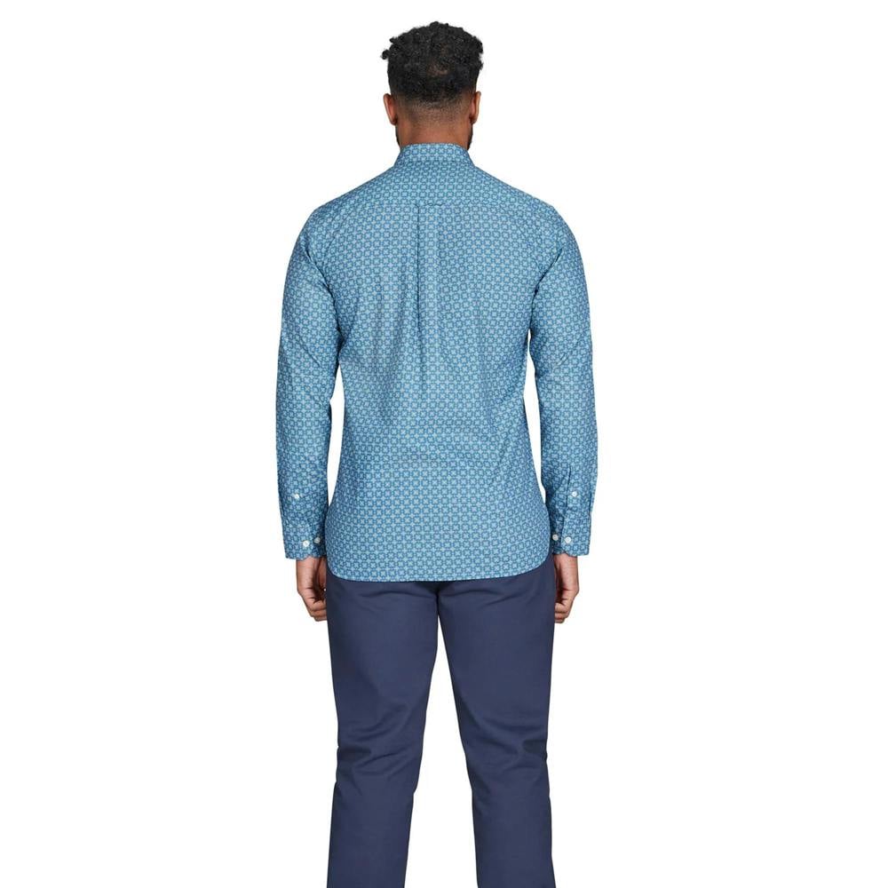 Cut in a classic fit, this men’s long-sleeved shirt comes in denim blue with a diamond-patterned design and logo detailing. Made from 100% cotton, it has a lightweight, durable feel suited to everyday wear.