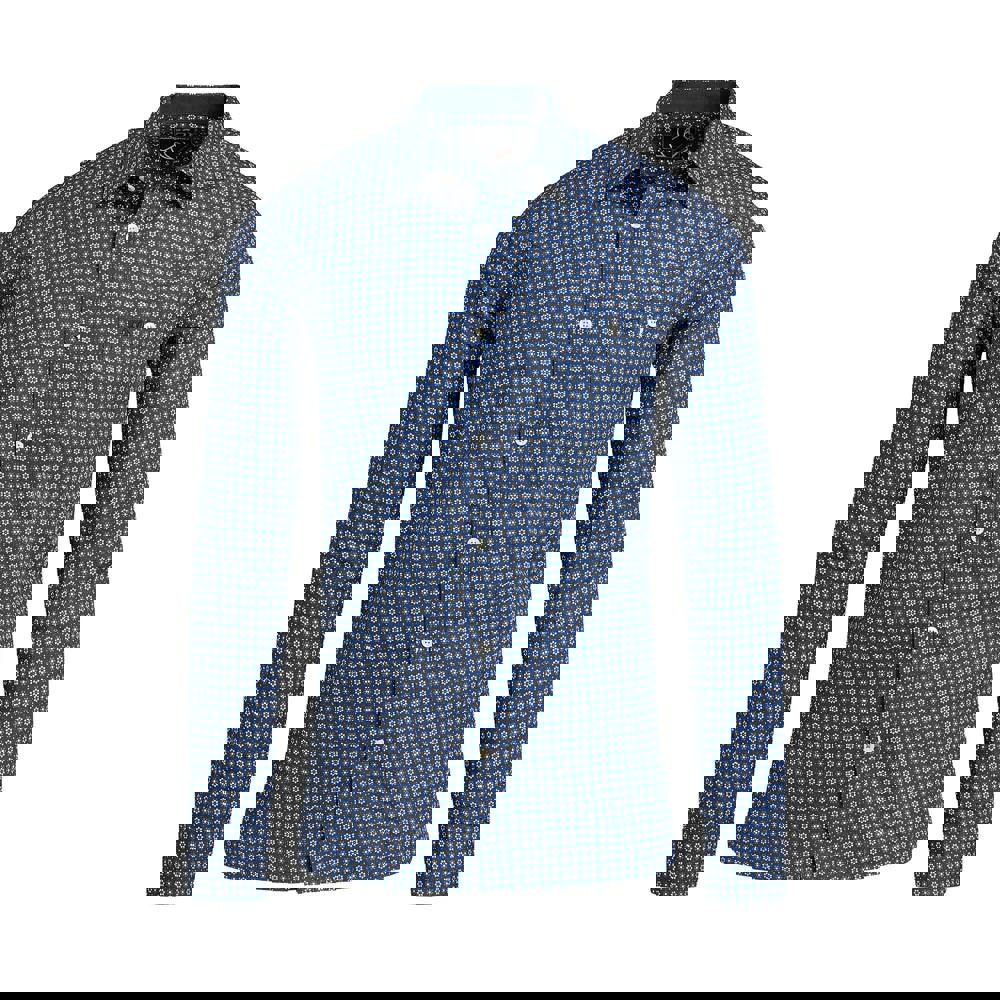 Raging Bull Mens Geometric Long-Sleeved Shirt - Navy