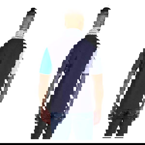 This men’s rugby polo shirt from Raging Bull comes in teal with a harlequin cut and sew panel design. Contrast colour detailing adds definition, while an embroidered logo provides a clear branded finish. A turn down collar and short sleeves keep the look classic and easy to wear for casual outfits.