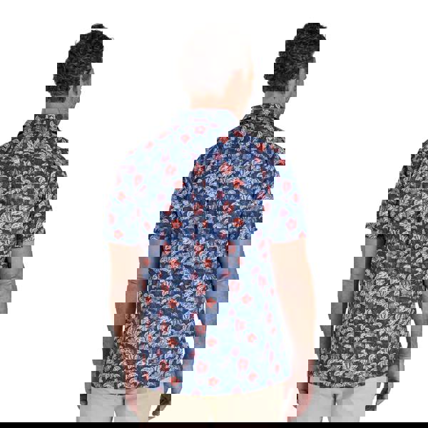 Bring a bold pattern into warm-weather dressing with the Raging Bull Hawaii floral poplin short-sleeved shirt in navy. Cut with a turn down collar and a button-down fastening, it offers a clean, classic finish that works for casual days and relaxed evenings. The all-over floral print is paired with logo detailing for a distinctive look, while the short sleeves keep the silhouette easy and laid-back.