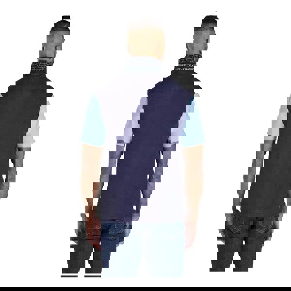 This men’s rugby polo shirt comes in navy pique cotton with a cut and sew panel construction. It has a classic fit and short sleeves, finished with a turn-down collar and a two-button placket.