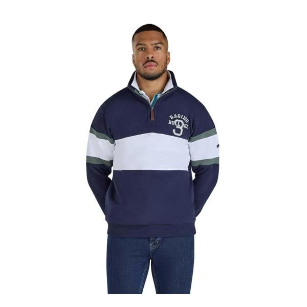 A bold layer for casual wear, the Raging Bull Men’s Quarter Zip Sweatshirt comes in navy with a colour-block design. Logo and number detailing add a distinctive finish, while the standing collar and quarter zip fastening keep the look clean and practical. Long sleeves are balanced with ribbed cuffs and a ribbed hem for a neat outline.