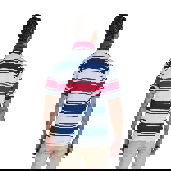 This men’s polo shirt from Raging Bull is made from 100% cotton in a jersey finish. It comes in navy, white and red with a wide stripe design and an embroidered logo for a clean, branded look.