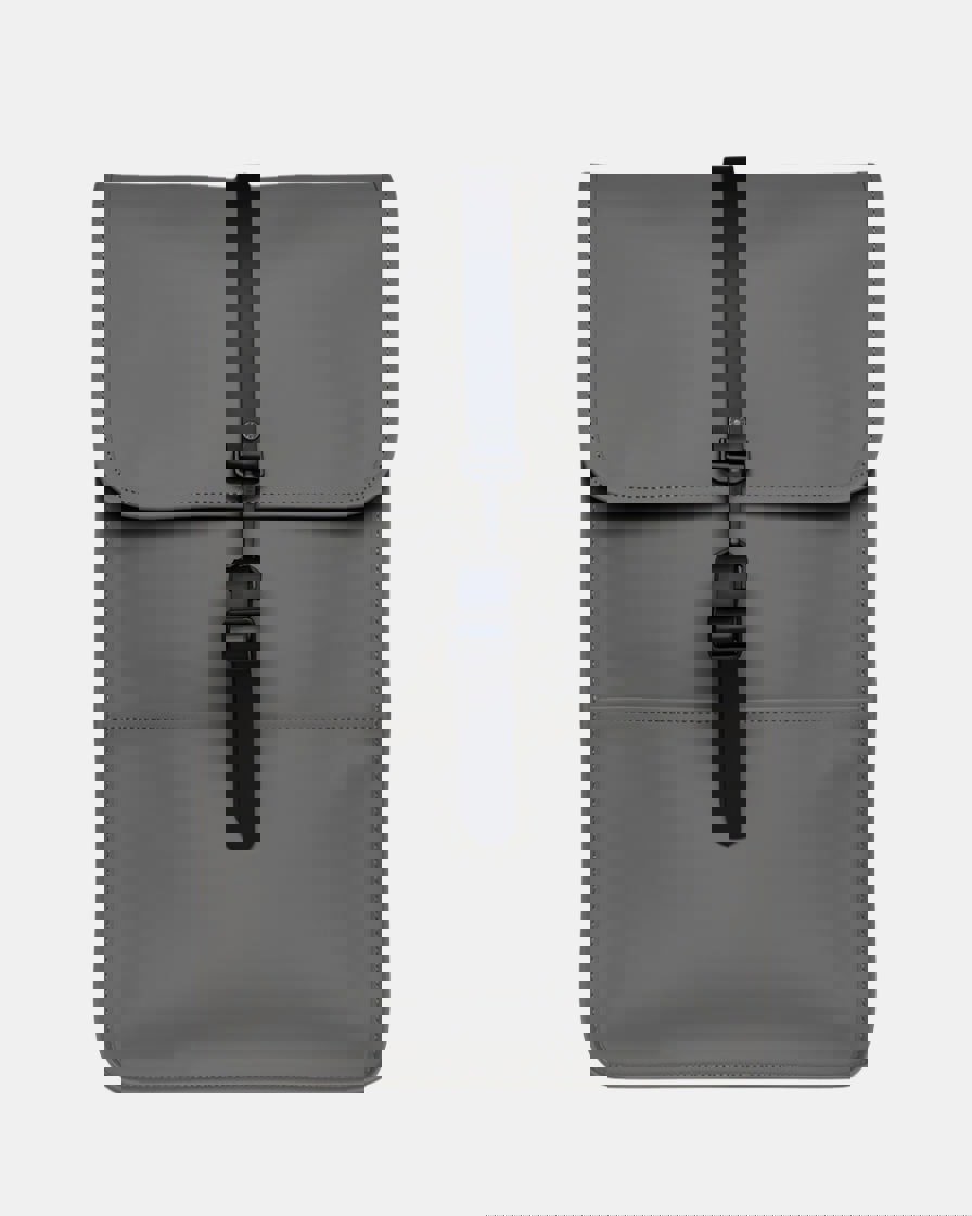 Backpack is cut in Rains’ signature waterproof PU fabric, engineered for carrying strength, durability, and a smooth feel.