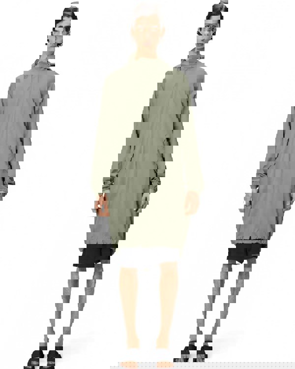 Fishtail Parka is a unisex raincoat. Characterized by its pared-back aesthetic and drawstring fishtail hem in parka-length.