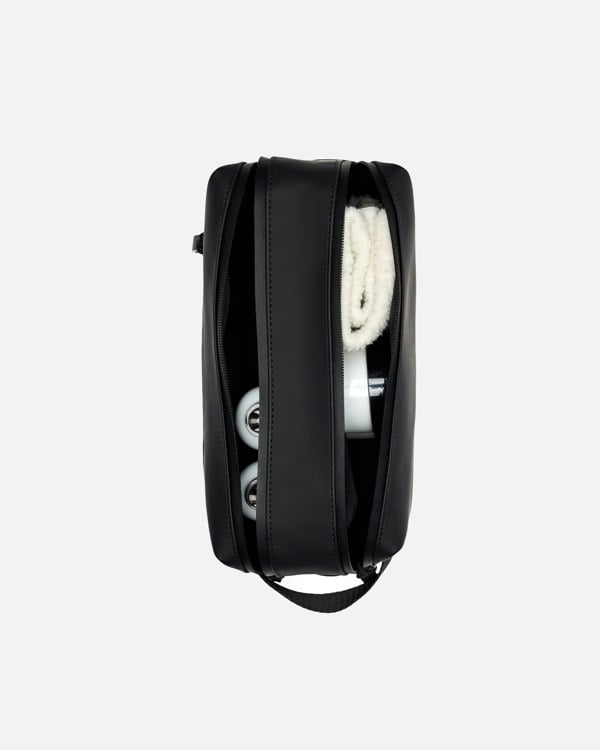 The 2 Zip Wash Bag offers practical storage in a minimal silhouette, ideal for travel or everyday use. With two separate zip compartments, it allows for easy separation of grooming tools, makeup brushes, skincare or other small items.