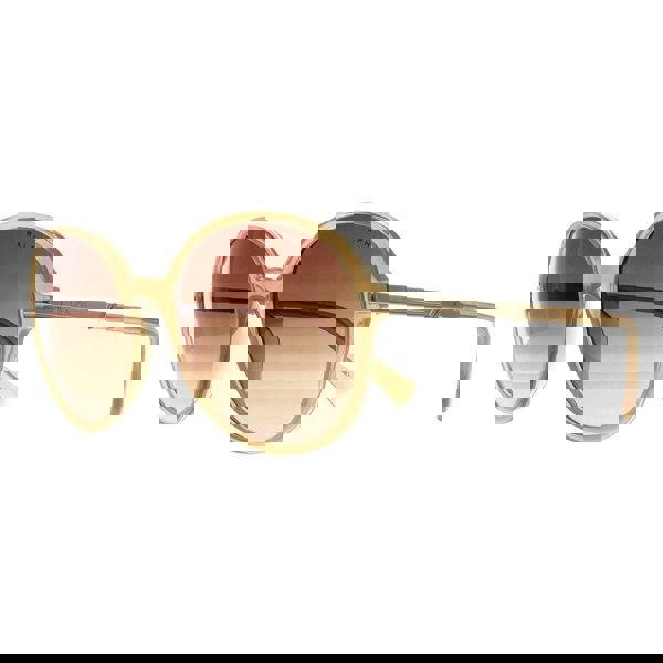Ralph By Ralph Lauren Sunglasses RA5297U 600413 Shiny Milky Light Brown Brown Gradient feature a stylish round frame with a modern twist, combining elegance and a bold, fashion-forward look