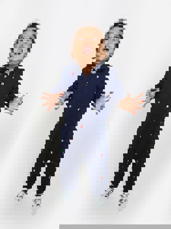 This Ralph Lauren Kids logo romper comes in navy with a Schiffli design. A one-piece babygrow style, it suits loungewear and keeps the look clean and coordinated.
