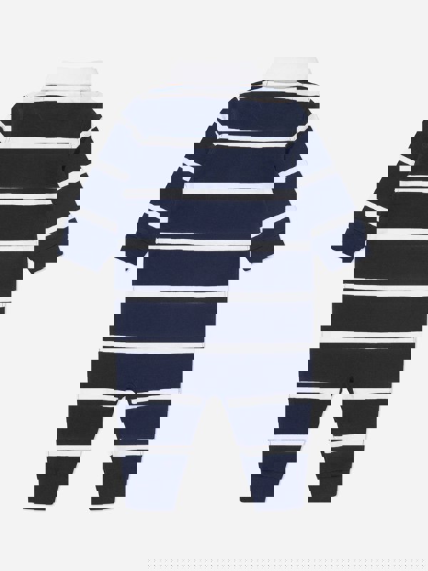 This Ralph Lauren Kids rugby romper comes in navy with a striped print. A single-piece style for baby boys, it brings a classic rugby look to everyday outfits.