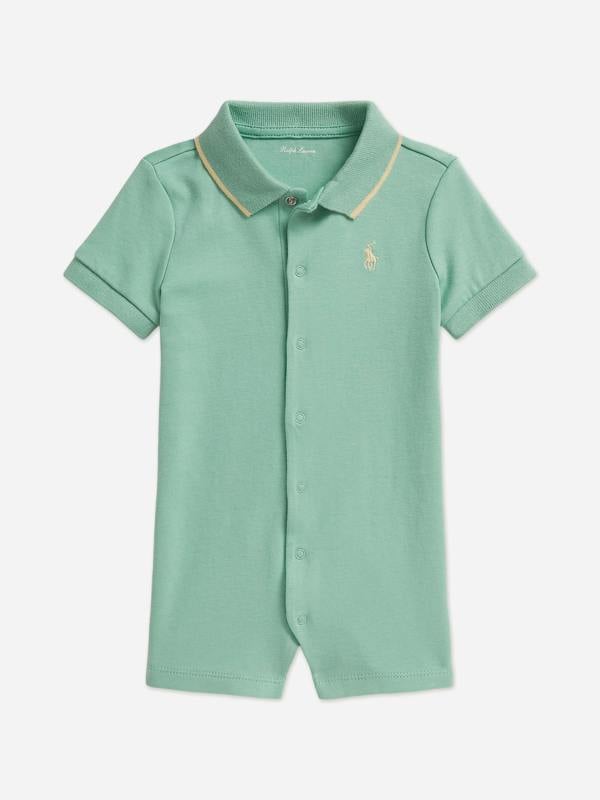 This Ralph Lauren Kids baby boys polo romper comes in a vibrant green hue for a fresh look. The polo design brings an iconic, casual style to a one-piece silhouette, making it a distinctive addition to an SS2026 wardrobe.