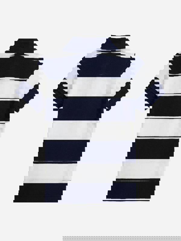 This baby boys polo shirt from Ralph Lauren Kids comes in Newport navy and white with an all-over striped finish. Made from 100% cotton, it has a classic collar and short sleeves for a clean, traditional look.
